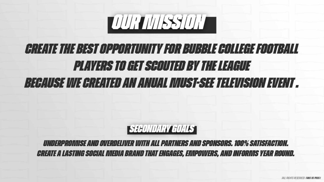 my passion (college football), my monetizable skills (media experience), what the market needs (an eventized game that brings talent the NFL wants to meet to a central location), and my spiritual needs (personally succeed with my opportunities by giving others a chance to succeed).